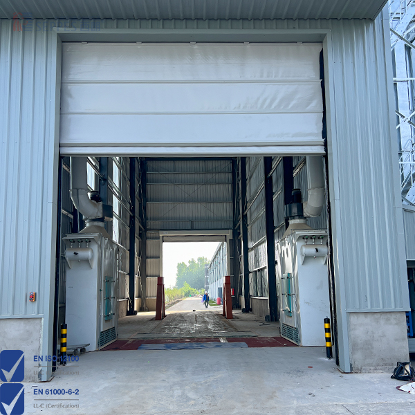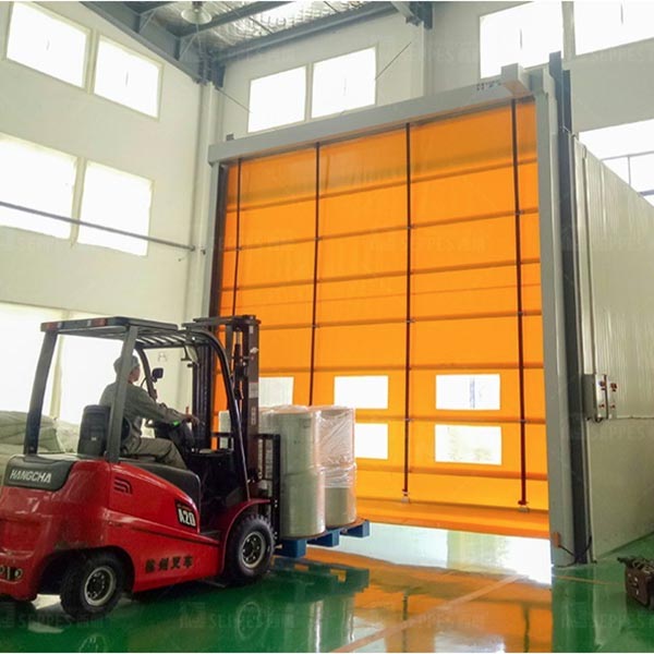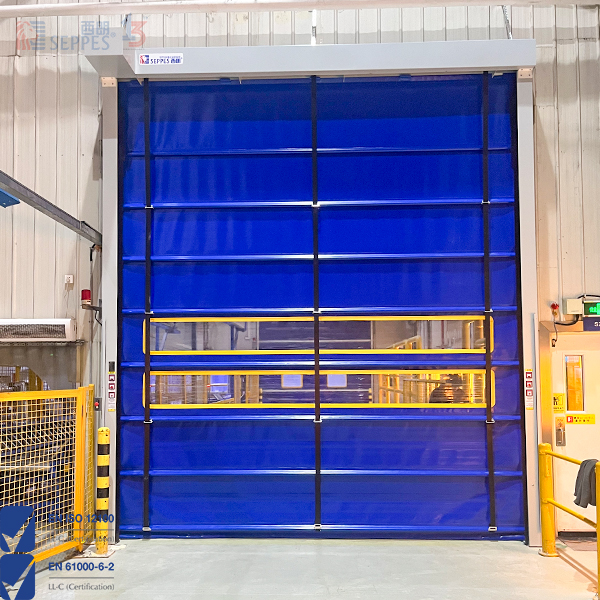 SEPPES(西朗)抗風堆積式快速門适用于物流通道出入口和大面積的洞口環境,采用折疊提升方式和多條内置或外置式橫向抗風杠杆,使風壓可以均布于門簾整體,可抗約10級左右強風,抗風性遠高于常規滾筒式快速卷簾門。